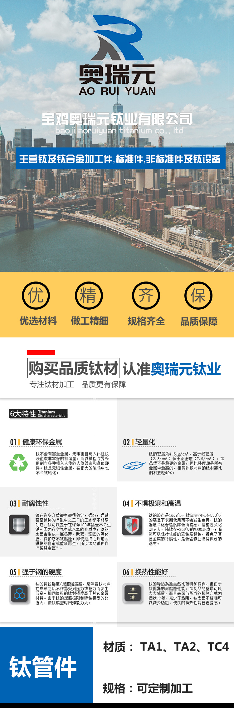 金屬鈦的密度為4.51g/立方厘米,高于鋁而低于鋼、銅、鎳,但比強度位于金屬之首。